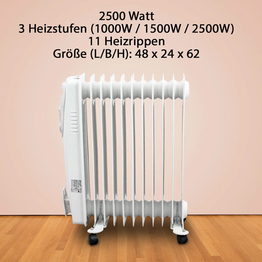 Hľadáte spoľahlivý a úsporný zdroj tepla na chladné dni alebo ako zálohu pri výpadku kúrenia? Olejový radiátor BITUXX 2500 W s 11 rebrami zabezpečuje rovnomerné sálavé teplo a komfort bez prievanu a hluku. Vďaka termostatu ľahko nastavíte požadovanú teplotu a tri výkonové stupne (1000/1500/2500 W) prispôsobíte aktuálnym podmienkam.