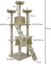 Poskytnite svojej mačke vlastný svet zábavy a pokoja. Vysoký mačací strom s výškou 170 cm kombinuje lezenie, škrabanie, odpočinok aj pozorovanie v jednom. Vďaka viacerým úrovniam a pevnej základni je vhodný aj pre väčšie mačky, zatiaľ čo mäkké plochy a útulné domčeky zaistia bezpečné útočisko na spánok.