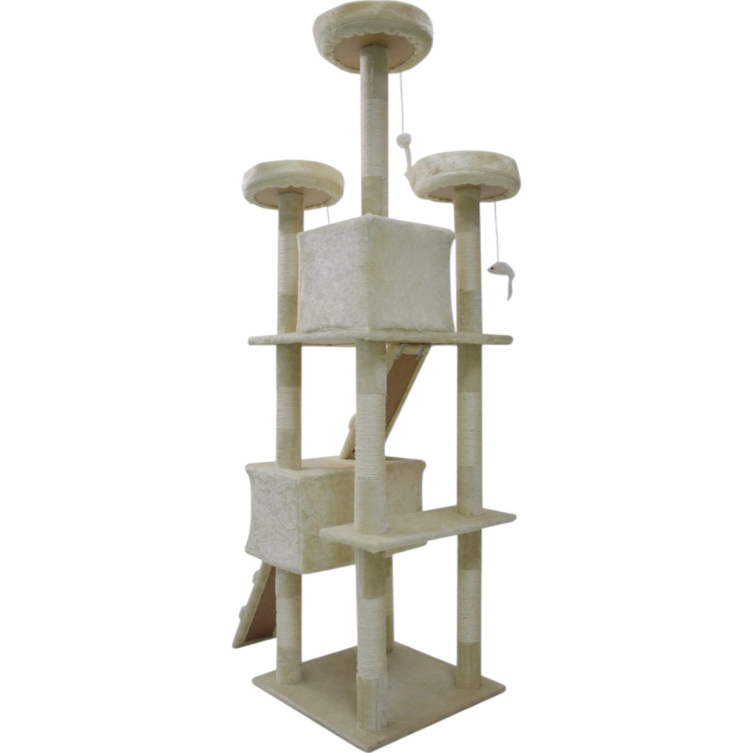 Stĺpiky omotané pravým sisalom chránia váš nábytok pred pazúrikmi, závesné hračky podnecujú lovecké inštinkty a rampa/rebrík uľahčuje prístup na vyššie poschodia. Vďaka neutrálnej farbe sa strom ľahko začlení do akéhokoľvek interiéru a jednoduchá montáž s priloženým návodom zaistí rýchle sprevádzkovanie.