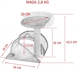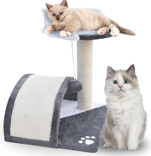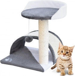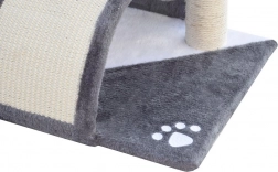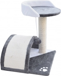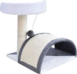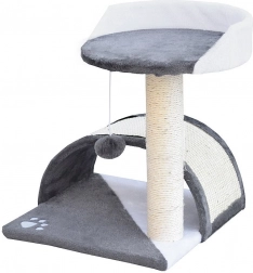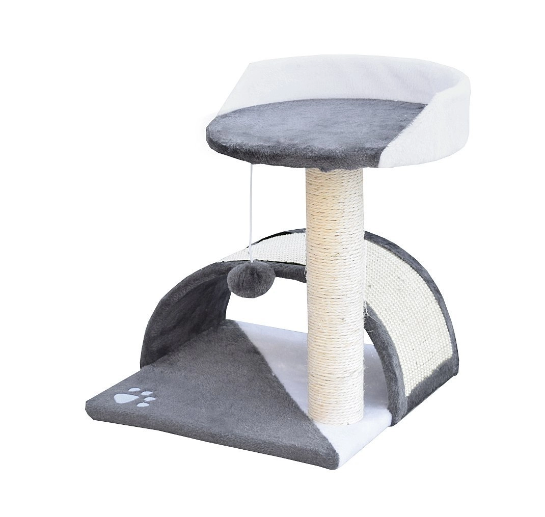 Stabilná konštrukcia z MDF s plyšovým poťahom a prírodným sizalom zaručujú dlhú životnosť aj pohodlie. Nechýba závesný pom-pom, ktorý prebúdza lovecké inštinkty a motivuje k pohybu. Decentné bielo‑sivé prevedenie ľahko zladíte s akýmkoľvek štýlom domácnosti.