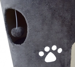 Vo vnútri nájdete viac úrovní na objavovanie a oddych, v hornej časti potom pohodlné miesto s pelechom na nerušené vyhliadanie. Visiace pompony vo vstupných okienkach podnecujú k hre a lovu, takže váš miláčik sa zabaví aj bez vašej asistencie.