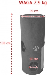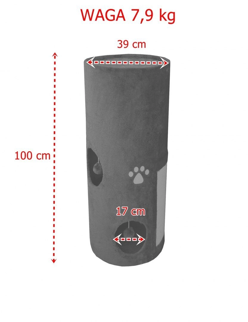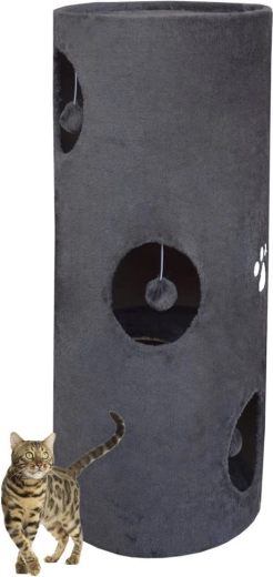Táto vysoká škrabacia tuba s univerzálnou sivou farbou je ideálna pre mačky, ktoré rady šplhajú, schovávajú sa a potrebujú si pravidelne obrusovať pazúriky. Vonkajšia strana je potiahnutá jemným plyšom pre maximálne pohodlie, zatiaľ čo integrovaný panel zo sisalu podporuje prirodzené škrabanie a chráni váš nábytok.