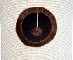Vo vnútri veže sa nachádzajú tri úrovne prepojené okienkami, v ktorých sú umiestnené závesné pompóny pre ešte väčšiu porciu zábavy. Vďaka stabilnej konštrukcii z MDF dosky a kvalitným materiálom je škrabadlo odolné, bezpečné a vhodné aj na každodenné používanie.