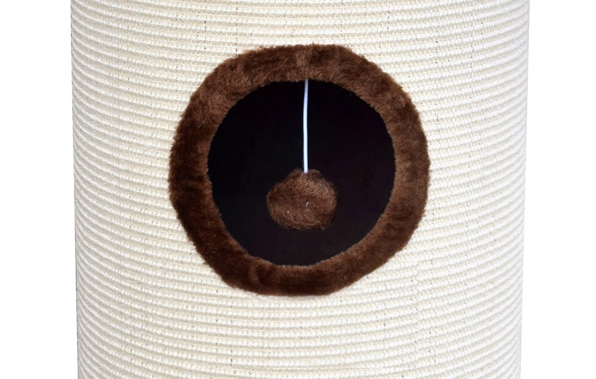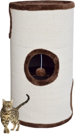 Táto mačacia tuba/ležiaca veža s výškou 70 cm je ideálnou voľbou pre mačky, ktoré milujú škrabať, schovávať sa a pozorovať dianie z výšky. Vonkajší plášť je potiahnutý prírodným sisalom, ktorý pomáha obmedziť ničenie nábytku a uspokojí prirodzenú potrebu škrabania. Hornú časť tvorí mäkký plyšový pelech, v ktorom si mačka dopraje maximálne pohodlie.