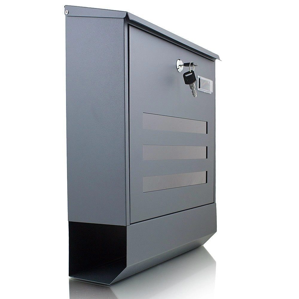 Praktická nástenná poštová schránka v elegantnej antracitovej farbe ponúka veľký objem, zámok s 2 kľúčmi a integrovaný držiak na noviny. Vďaka odolnej kovovej konštrukcii a práškovému lakovaniu je ideálna na každodenné bezpečné prijímanie pošty formátu DIN A4.