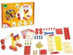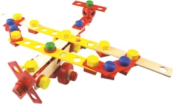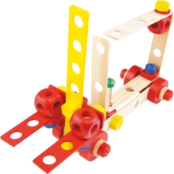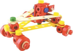 Farebné aj prírodné latky, skrutky, matice, kolieska a spojky umožnia deťom skladať vozidlá aj fantazijné konštrukcie a neustále ich prestavovať.