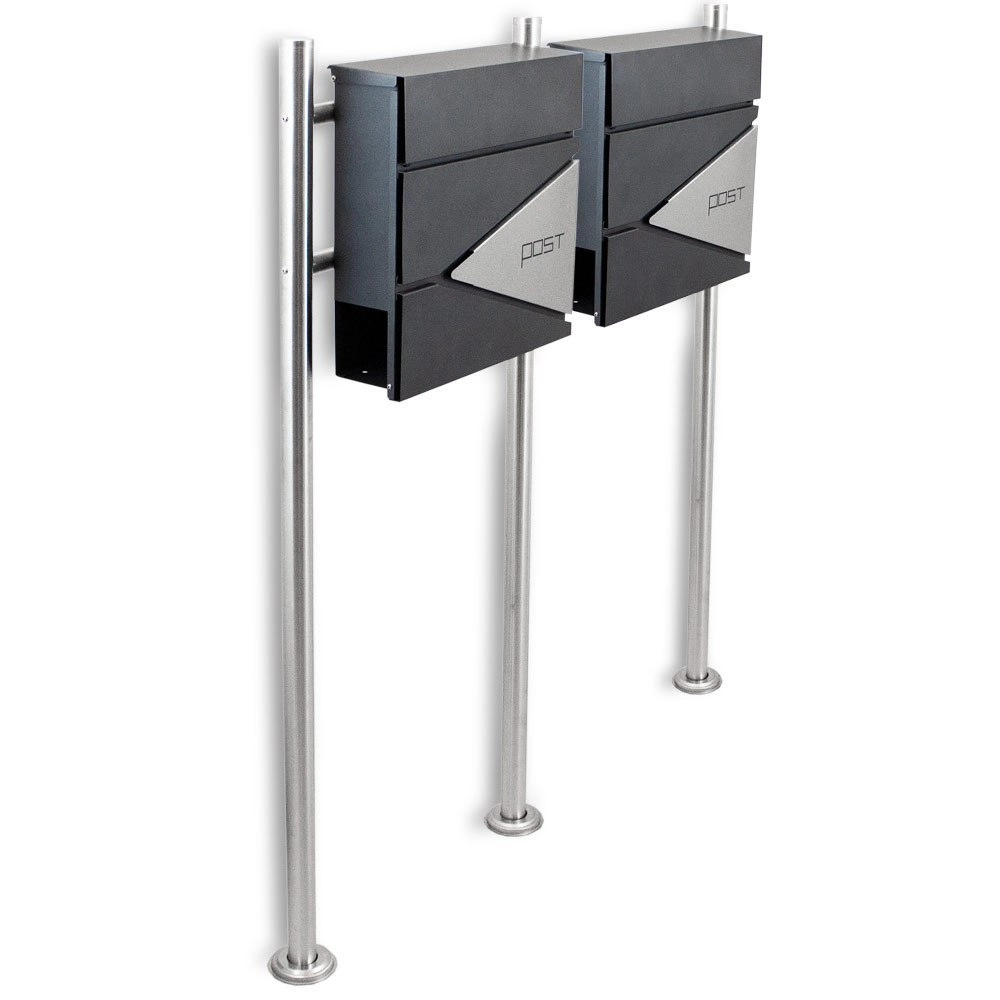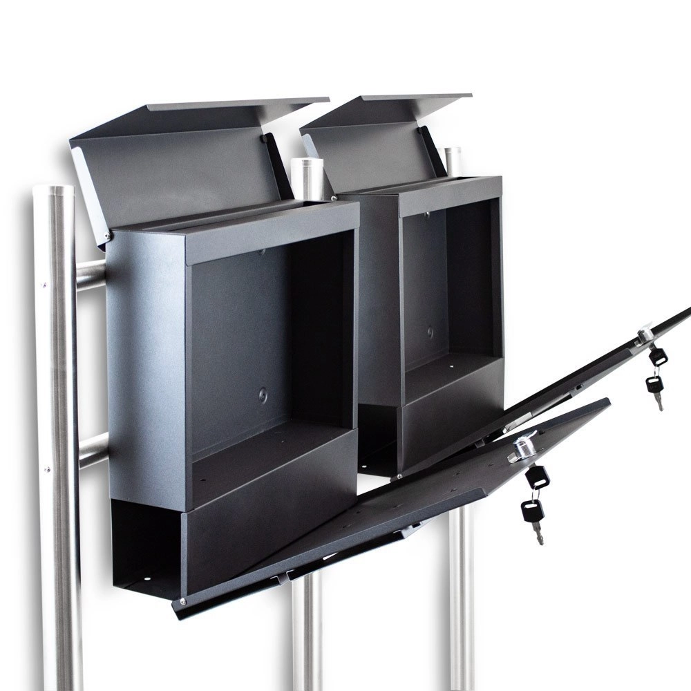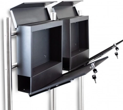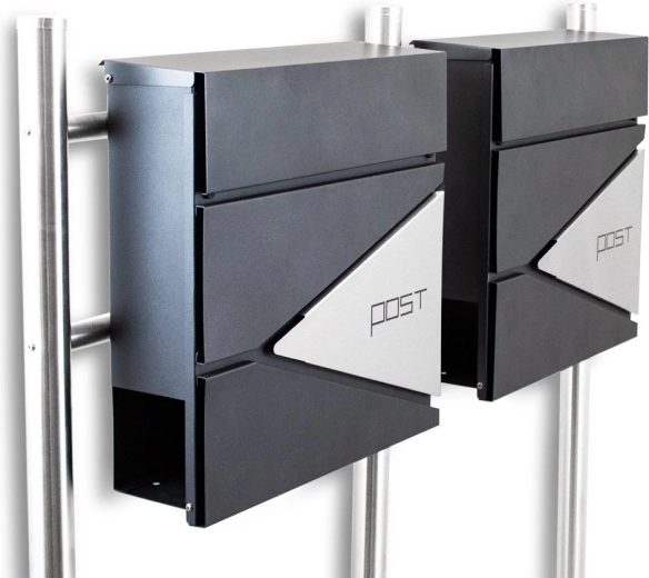 Elegantná a praktická poštová schránka v sade s dvoma boxami na pevnom nerezovom stojane je navrhnutá pre pohodlné každodenné používanie. Široký otvor na vhadzovanie uľahčuje vkladanie listov aj menších zásielok a samostatná priehradka bezpečne pojme noviny či letáky, aby nezaberali priestor v hlavnej schránke.