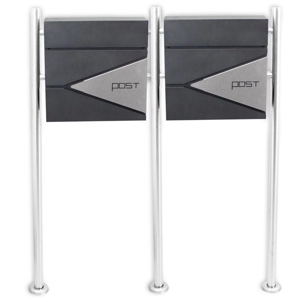 Moderná dvojitá poštová schránka na stojane od značky BITUXX ponúka veľkú kapacitu, široký vhoz a integrovanú priehradku na noviny. Odolná kombinácia pozinkovanej ocele a nerezu s práškovým lakom zaisťuje dlhú životnosť a odolnosť voči počasiu. Ideálna pre rodinné domy, bytové domy aj firemné prevádzky.