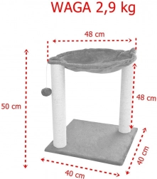 Praktická a elegantná hamaka pre mačky kombinuje pohodlné odpočinkové lôžko a funkčné škrabadlo. Podstavec aj lôžko sú potiahnuté jemným plyšom, takže si mačka užije mäkký a teplý peliešok. Dvojica pevných stĺpikov je kompletne omotaná prírodným sisalom, ideálnym na každodenné brúsenie pazúrikov.
