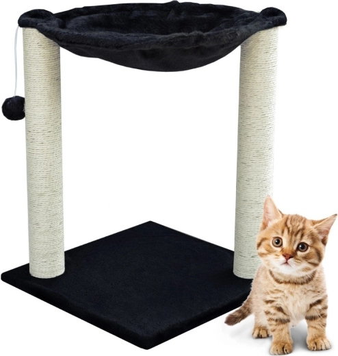 Minimalistický čierny dizajn skvele zapadne do väčšiny interiérov. Vďaka kompaktným rozmerom sa hodí aj do menších bytov a zároveň poskytne mačke bezpečné vyvýšené miesto na relax. Závesná hračka v podobe pomponu podnecuje prirodzený lovecký inštinkt a prináša hodiny zábavy.