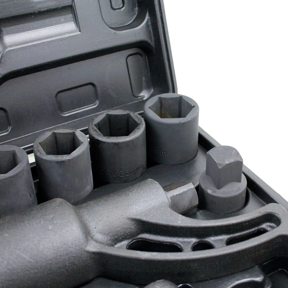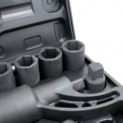 Odolná chróm-molybdénová oceľ zabezpečuje dlhú životnosť a stabilitu aj pri vysokom zaťažení. V balení nájdete 7 nadstavcov v bežných rozmeroch 24–38 mm, korbu, predĺženie a adaptér 1", to všetko v pevnom transportnom kufri pre jednoduché prenášanie a prehľadné uloženie.