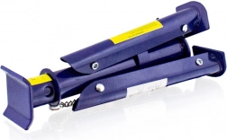 Robustné oceľové spracovanie, trojnohá základňa a široké pätky zaisťujú istotu na rôznych povrchoch. Bezpečnostné kolíky s reťazkou bránia nechcenému posunu a zvyšujú bezpečnosť práce. Modré prevedenie zlepšuje viditeľnosť v priestore dielne.
