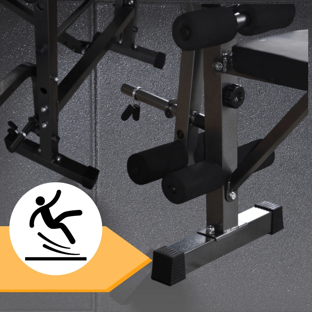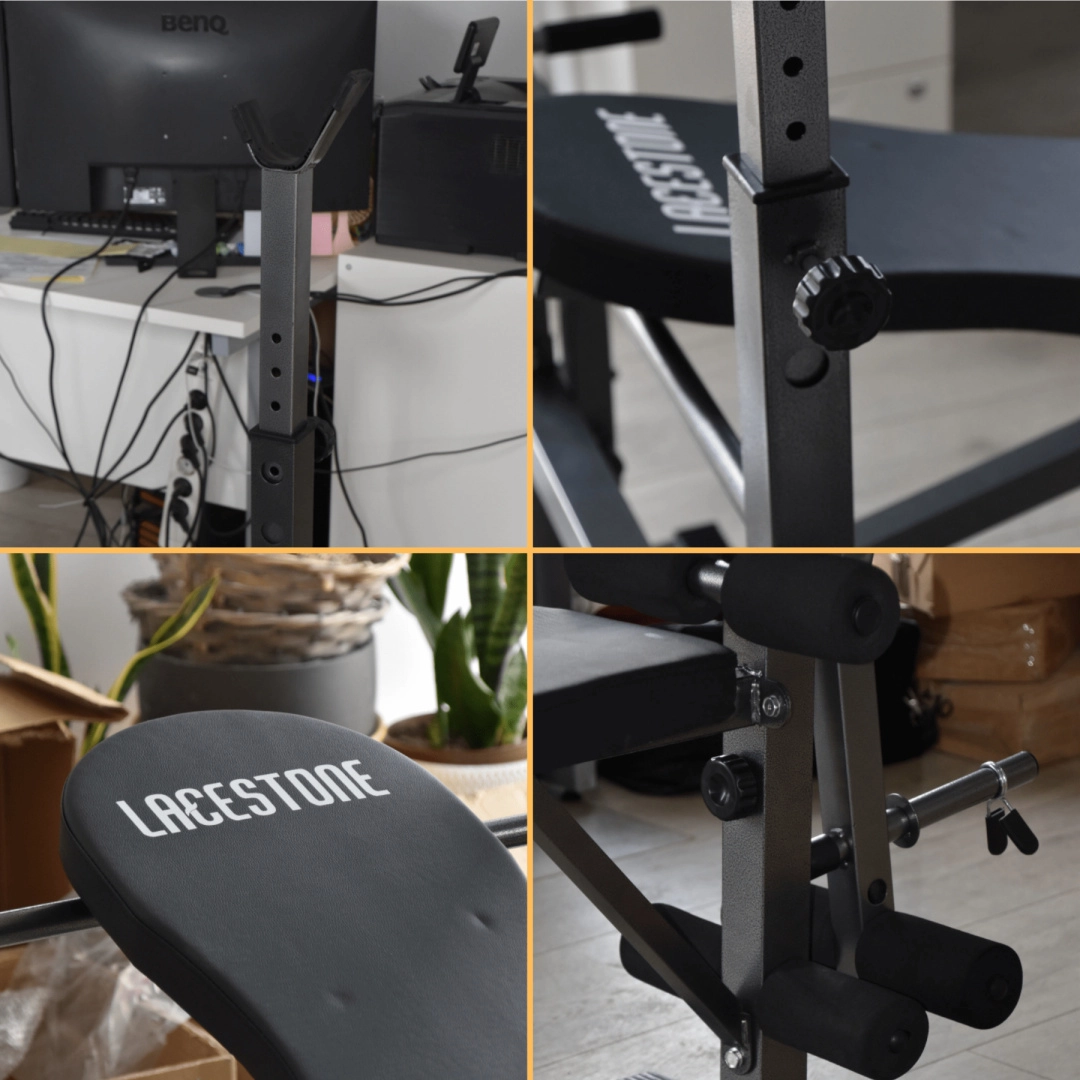 Domáci parťák na kompletný silový tréning: táto multifunkčná nastaviteľná lavica kombinuje stojany na os, modlitebník na biceps, predkopávanie a zakopávanie aj pohodlné polstrované opierky. Vďaka pevnej oceľovej konštrukcii, nastaviteľným výškam a protišmykovým koncovkám precvičíte hrudník, ramená, paže aj nohy bezpečne a efektívne – od začiatočníkov po pokročilých.