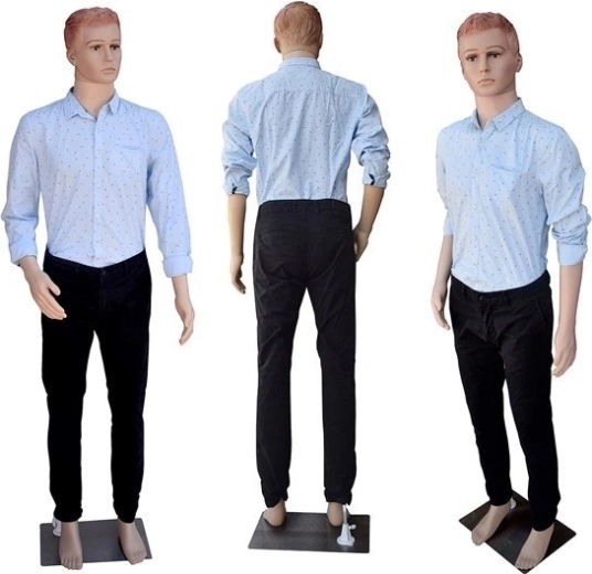 Hľadáte univerzálne riešenie na atraktívne vystavenie pánskej módy? Tento manekýn s realistickými črtami tváre a vernou postavou podporí predaj v butiku aj e-shope. Kovová základňa s uchytením v nohe zabezpečuje maximálnu stabilitu a čistý vzhľad bez rušivých prvkov spredu.