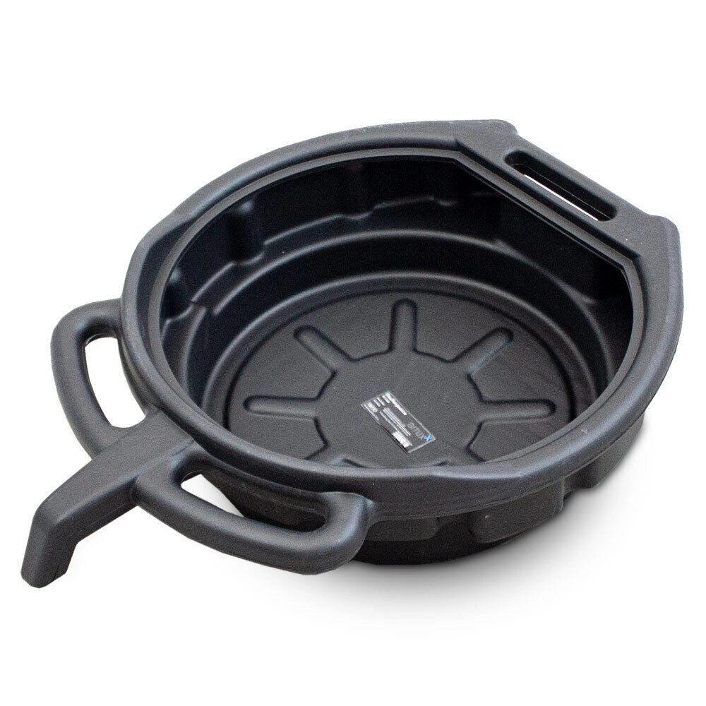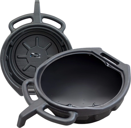 Praktická 10 l miska na olej s integrovaným kohútikom pre čistú a rýchlu výmenu bez neporiadku. Ľahký a odolný polyetylén (iba 0,86 kg) je odolný voči chemikáliám a ľahko sa udržiava. Integrované úchyty a výlevka uľahčia prenášanie a kontrolované zlievanie.