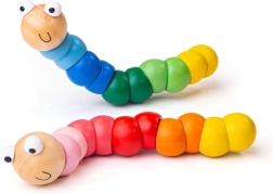 Tento farebný červík je ideálna prvá motorická hračka pre malé rúčky. Vďaka hladkým dreveným segmentom a bezpečnému spojeniu ho deti ľahko chytia, otáčajú a ohýbajú – precvičujú tak úchop, koordináciu ruka–oko aj koncentráciu. Veselé farby priťahujú pozornosť a podnecujú zvedavú hru.