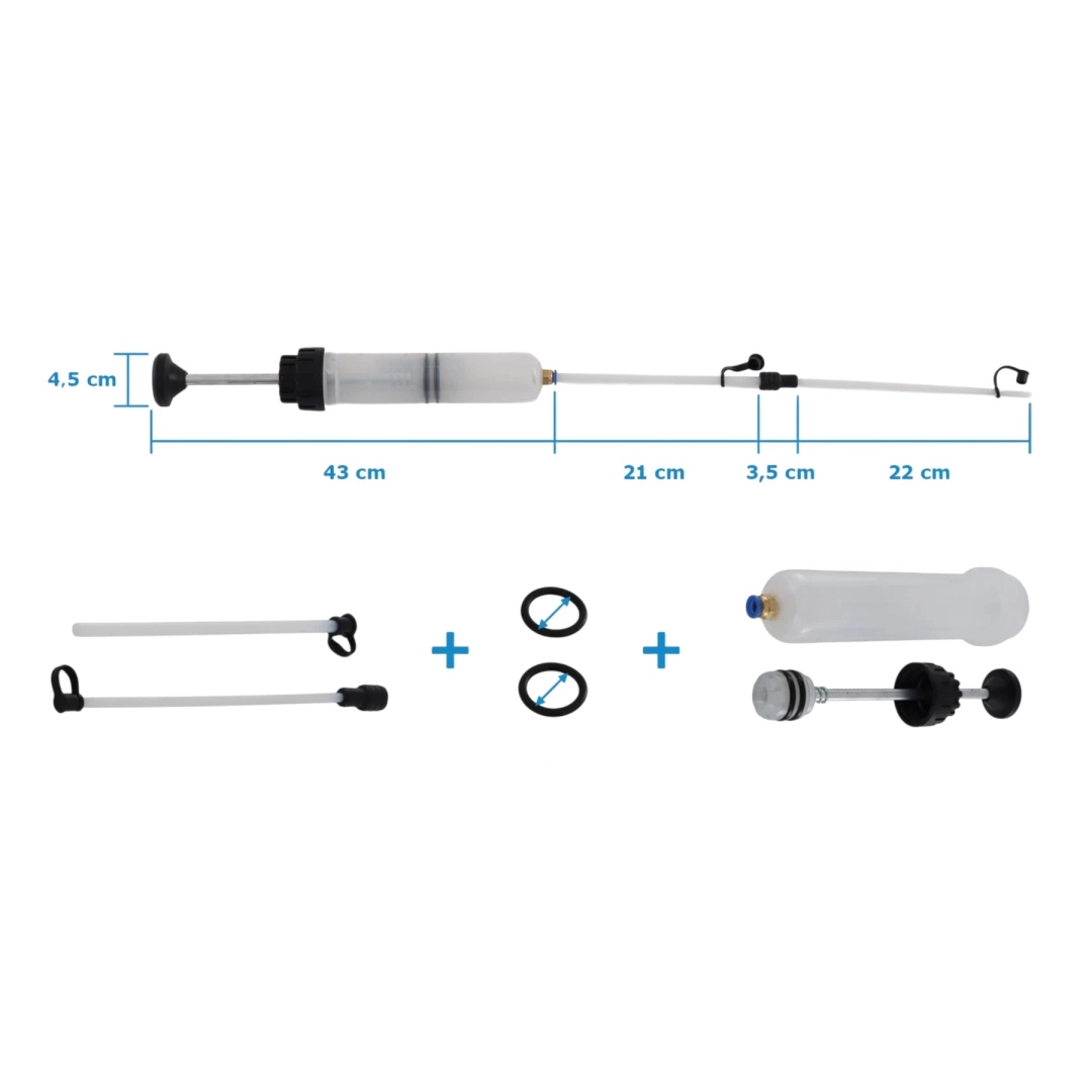 Hľadáte spoľahlivý nástroj na čisté a kontrolované dopĺňanie a odsávanie kvapalín? Táto ručná olejová pumpa s kapacitou 200 ml ponúka presné dávkovanie vďaka integrovanej stupnici, vysokú tesnosť vďaka dvojitým gumeným tesneniam a univerzálne použitie s dvojicou priehľadných PVC hadíc 1/4" a 3/8".