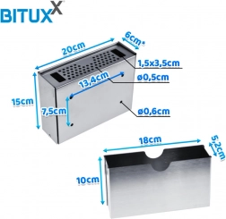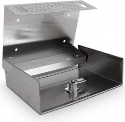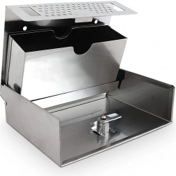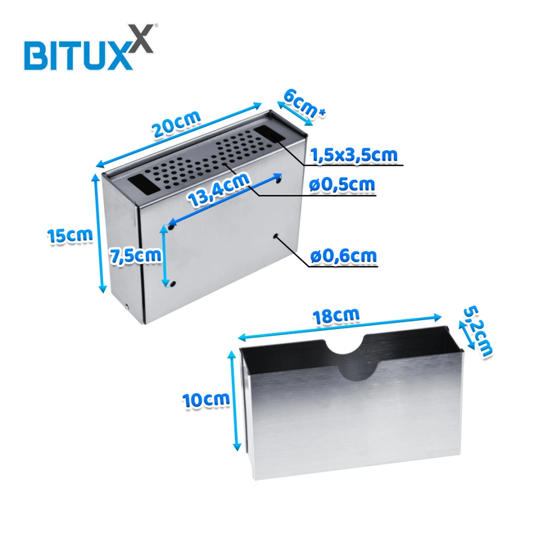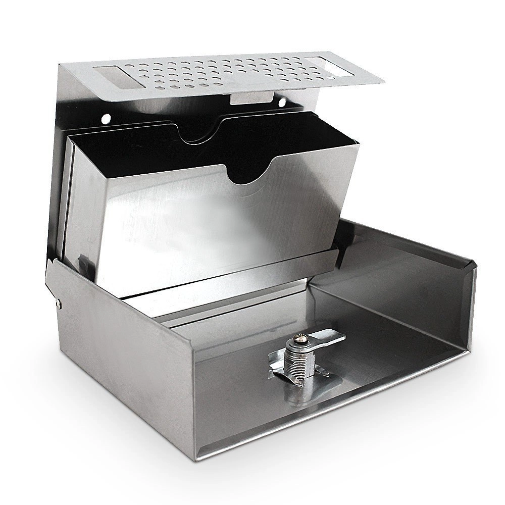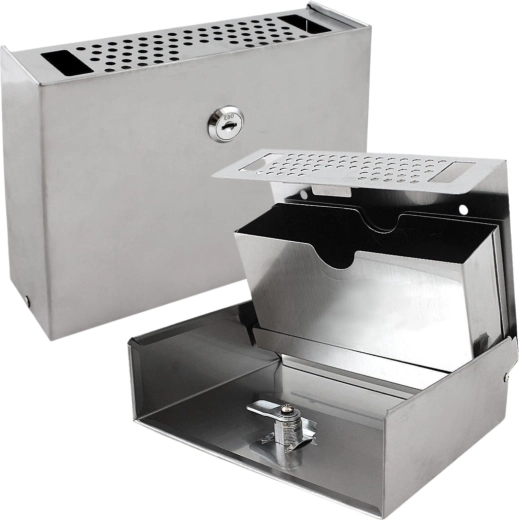 Tento kompaktný popolník z kvalitnej nehrdzavejúcej ocele (INOX) je navrhnutý na nástennú montáž a každodennú prevádzku. Moderný matný kovový vzhľad ladí s akoukoľvek fasádou a ventilačné perforácie podporujú bezpečnú prevádzku. Uzamykateľný čelný panel s dvoma kľúčmi chráni obsah pred nepovolanými osobami.