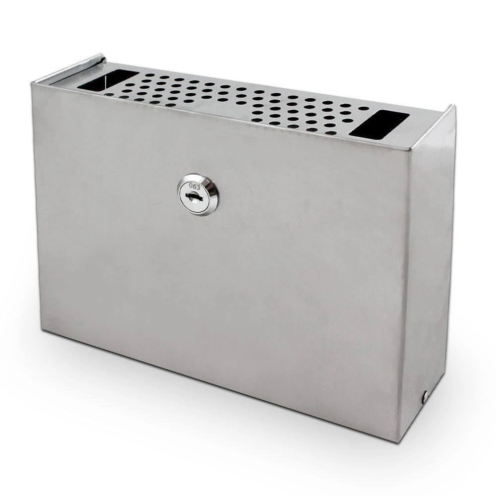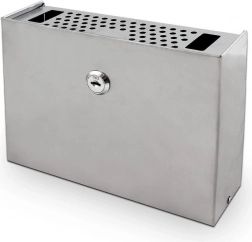 Elegantný a odolný nástenný popolník z nehrdzavejúcej ocele na vonkajšie aj vnútorné použitie. Vďaka uzamykateľným dvierkam, vyberateľnej vložke a kompaktným rozmerom udrží okolie vstupu čisté a reprezentatívne. Ideálny pre firmy, hotely, reštaurácie a verejné priestory.