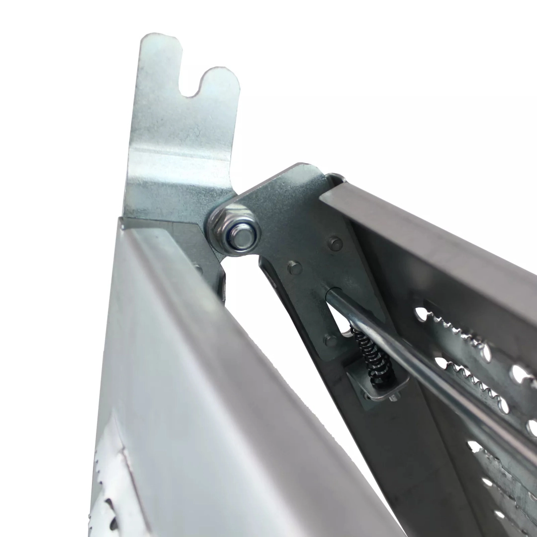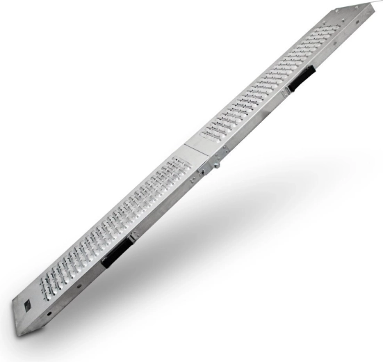 Vďaka robustnému pántu sa rampa rýchlo zloží zo 180 cm na 90 cm. Zámok a pevné nity zabezpečujú bezpečné používanie aj dlhú životnosť.