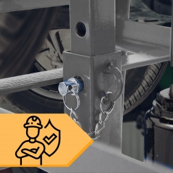 Mechanická aretácia s istením kolíkom a reťazkou pevne drží zvolenú výšku (23/26/30/34 cm) a minimalizuje riziko nechceného poklesu počas práce.