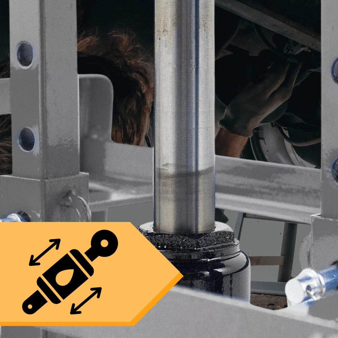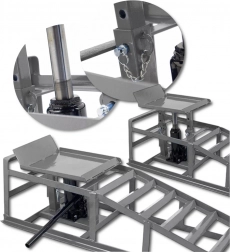 Ťažké oceľové profily zabezpečujú stabilitu a dlhú životnosť. Skrutkové a hydraulické prvky umožnia jemné doladenie výšky a bezpečné zaťaženie.