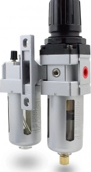 Univerzálna jednotka na úpravu vzduchu spája reduktor tlaku a filter s odvodom kondenzátu pre čistý a stabilný prívod vzduchu do vašich pneumatických nástrojov. Analógový manometer umožňuje okamžitú kontrolu tlaku, zatiaľ čo mechanická poistka ovládača bráni nechcenej zmene nastavenia.