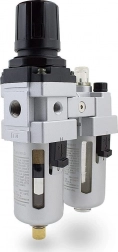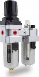 Vďaka odolnému hliníkovému odliatku je jednotka pripravená na každodenné nasadenie v dielni aj priemysle. Závit 1/4" uľahčuje integráciu do bežných inštalácií a závitový odkaľovací ventil zjednodušuje vypúšťanie vody.