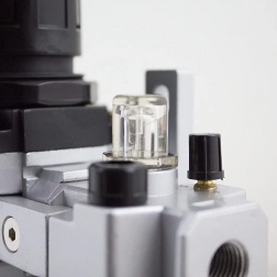 Integrovaný filter účinne oddeľuje vlhkosť, olej a nečistoty, čím chráni pneumatické prvky pred koróziou a zanášaním.