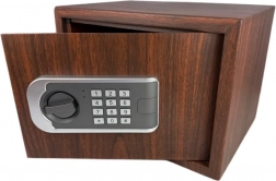Tento kompaktný trezor s drevodekorom spoľahlivo ochráni vaše cennosti a zároveň zapadne do interiéru. Elektronický zámok s otočným gombíkom umožňuje rýchly prístup pomocou kódu, zatiaľ čo mechanický kľúč slúži ako záloha. Súčasťou balenia sú montážne hmoždinky pre pevné ukotvenie.