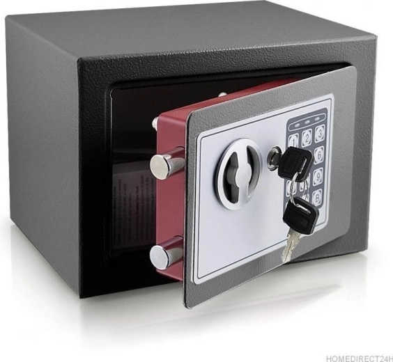 Kompaktný elektronický trezor Bituxx v elegantnej grafitovej farbe je ideálny na bezpečné uloženie hotovosti, dokumentov, šperkov aj dátových médií. Ponúka elektronický zámok s PIN kódom a 2 núdzové kľúče pre istotu prístupu, dvojitú blokáciu dverí a odolnú oceľovú konštrukciu s práškovou povrchovou úpravou. Vďaka kompaktným rozmerom 23 × 17 × 17 cm ho ľahko ukryjete do skrine či pripevníte na stenu.