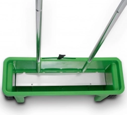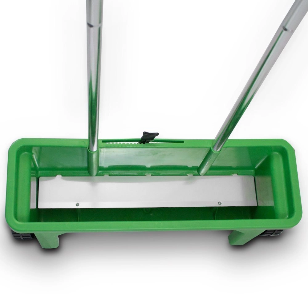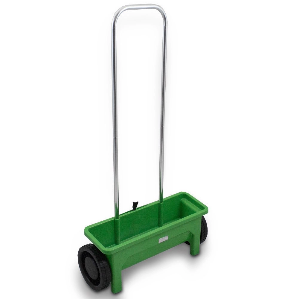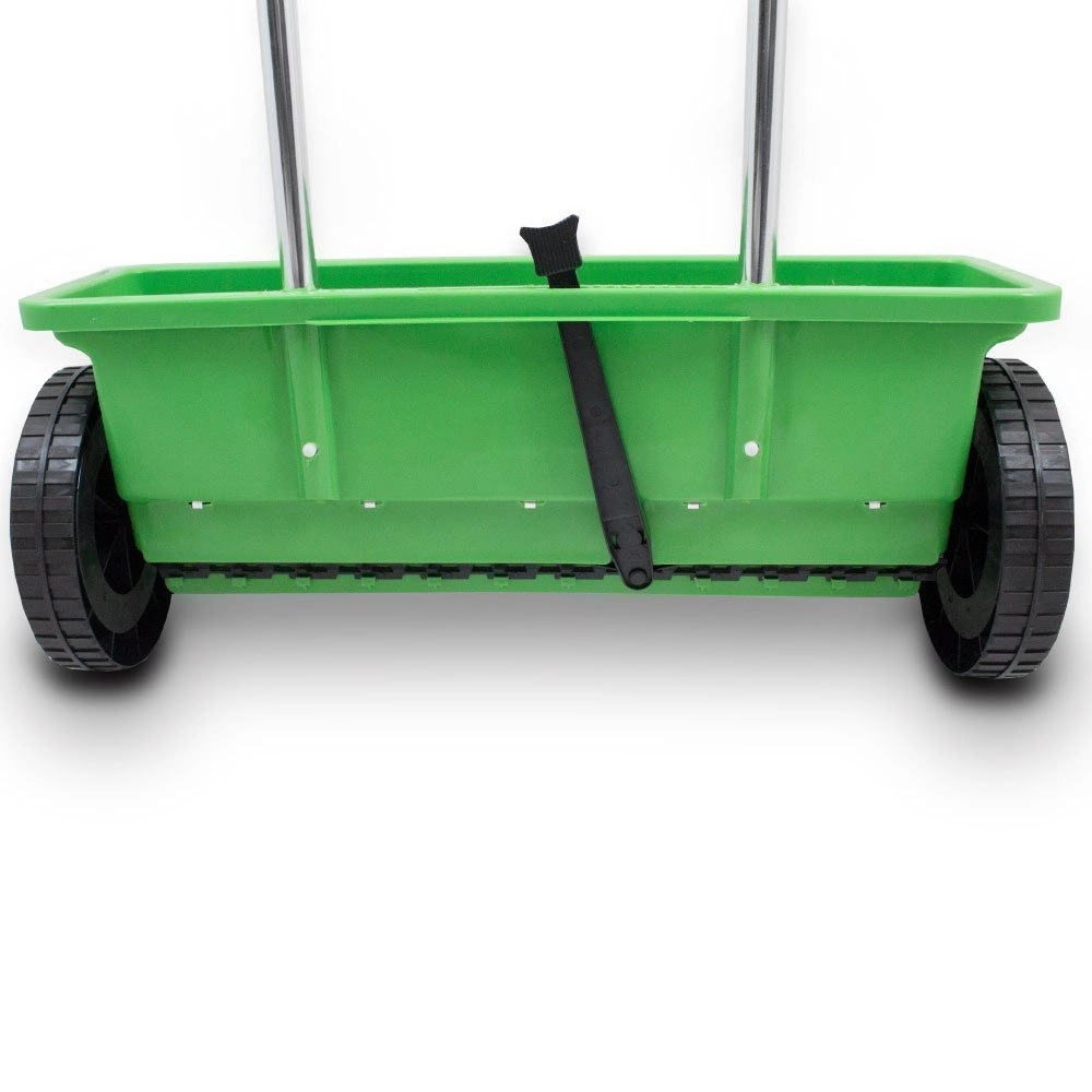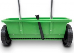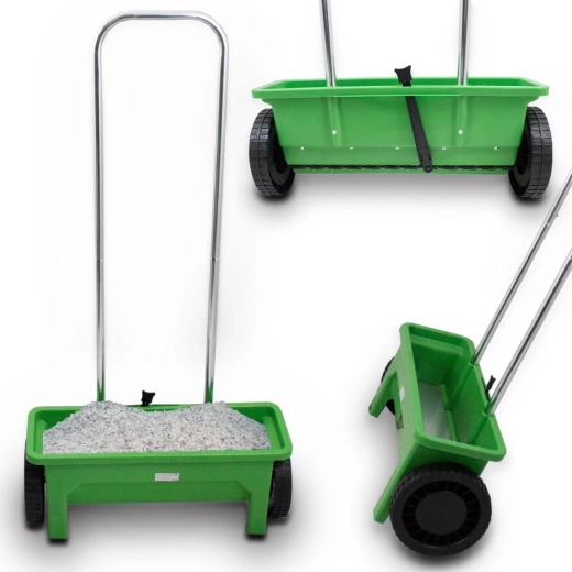 Desaťstupňové nastavenie dávky umožňuje prispôsobiť množstvo materiálu aktuálnym podmienkam a zabezpečiť rovnomerné rozprestretie bez plytvania. Hladké plastové kolesá sa dobre odvaľujú po rôznych povrchoch a stabilná konštrukcia uľahčuje plnenie aj údržbu.