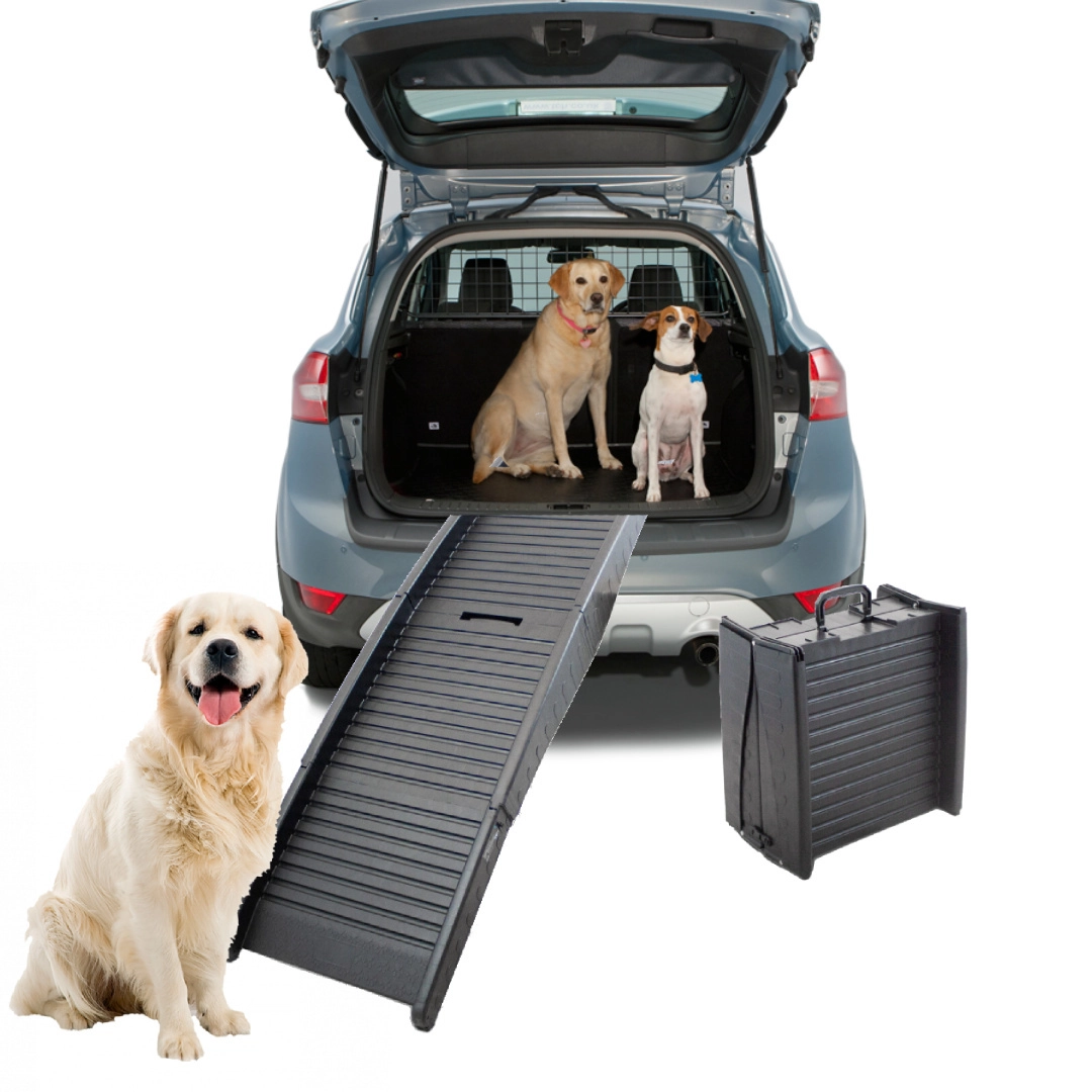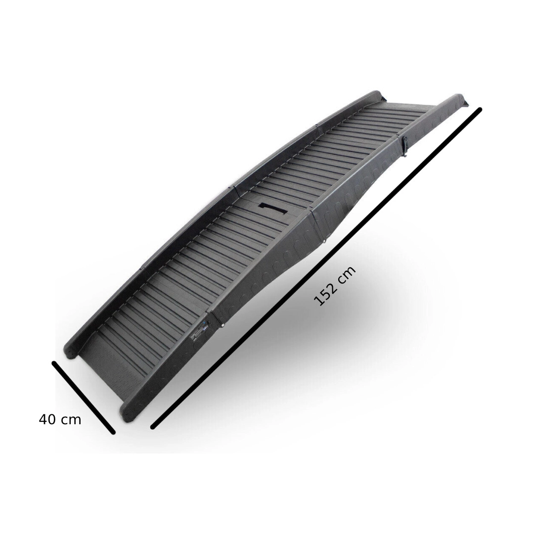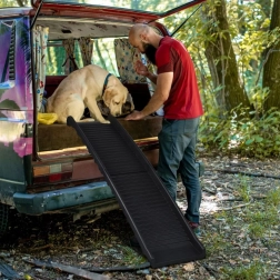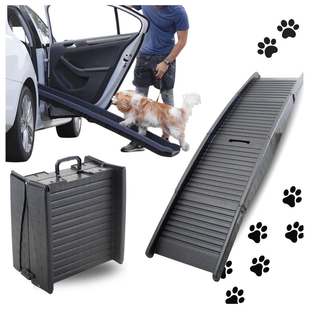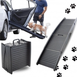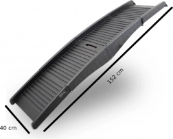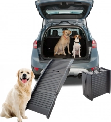Skladacia rampa pre psy je ideálna pre starších miláčikov, psov s problémami s kĺbmi aj malé plemená. Ľahká konštrukcia (cca 3,9 kg) z odolného plastu a protišmyková nášľapná plocha zaistia vášmu psovi stabilitu a istý krok pri nastupovaní do kufra či na zadné sedadlá.