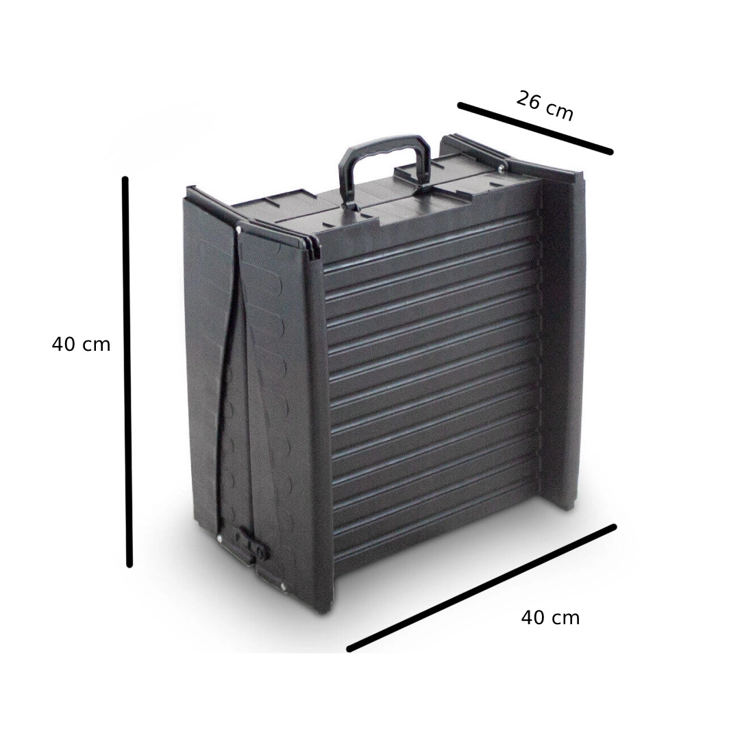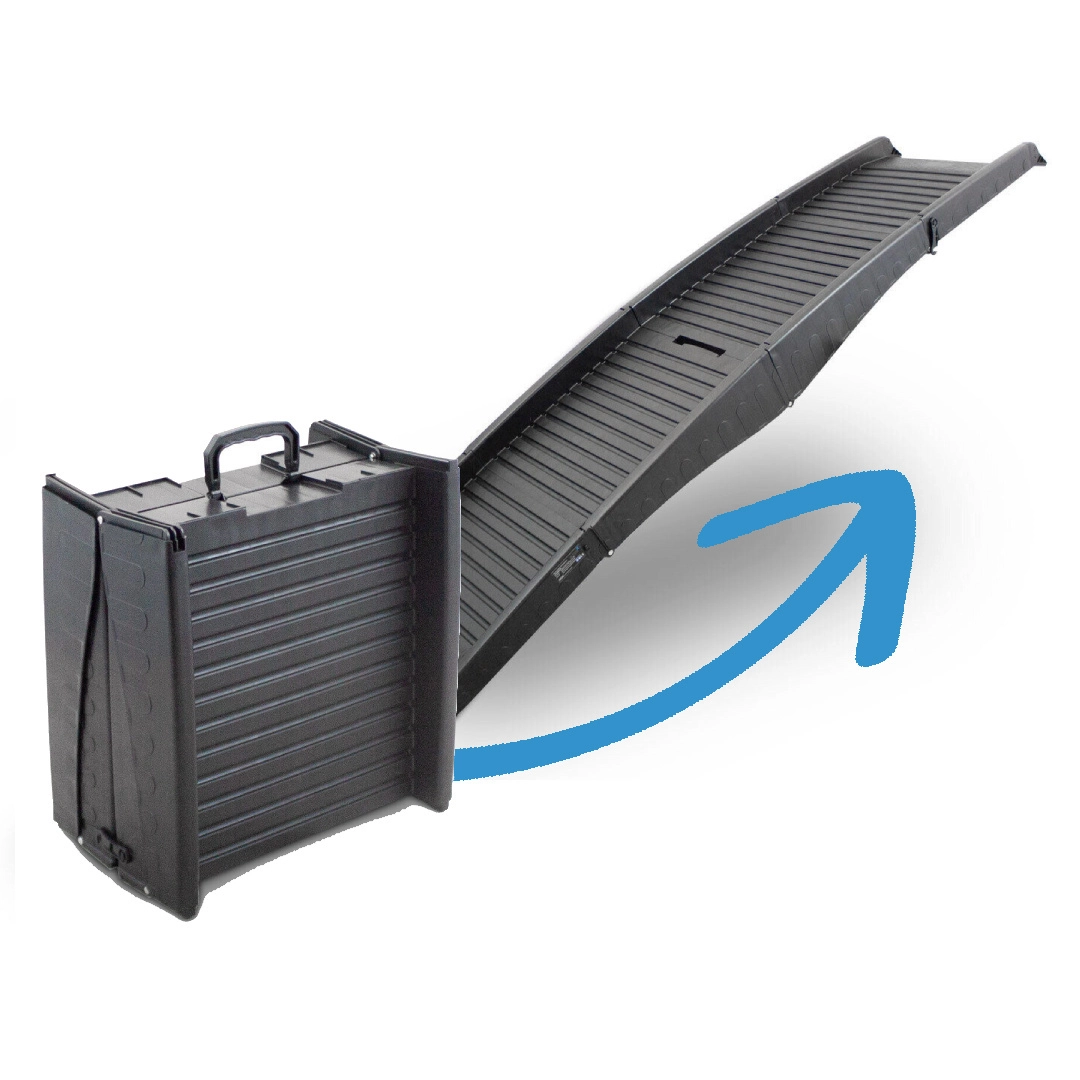 Rampa sa rýchlo zloží do kompaktného tvaru. Praktické madlo a nízka hmotnosť uľahčujú manipuláciu aj uloženie v kufri.