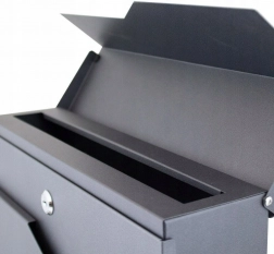 Vďaka pevnej konštrukcii z pozinkovanej ocele s práškovým lakovaním je schránka odolná proti korózii aj poveternosti. Minimalistický hranatý dizajn v matnom grafite s nerezovými detailmi zapadne k moderným plotom aj fasádam a podčiarkne vzhľad vášho domu.