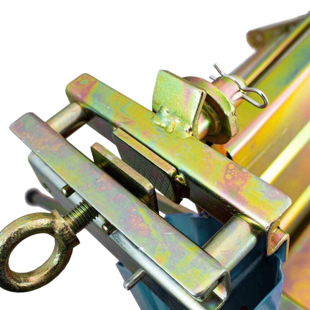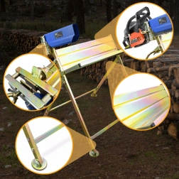 Masívna oceľová konštrukcia s V-kolískou drží kmene pevne a znižuje vibrácie pri reze. Skladací dizajn šetrí miesto a uľahčuje transport.