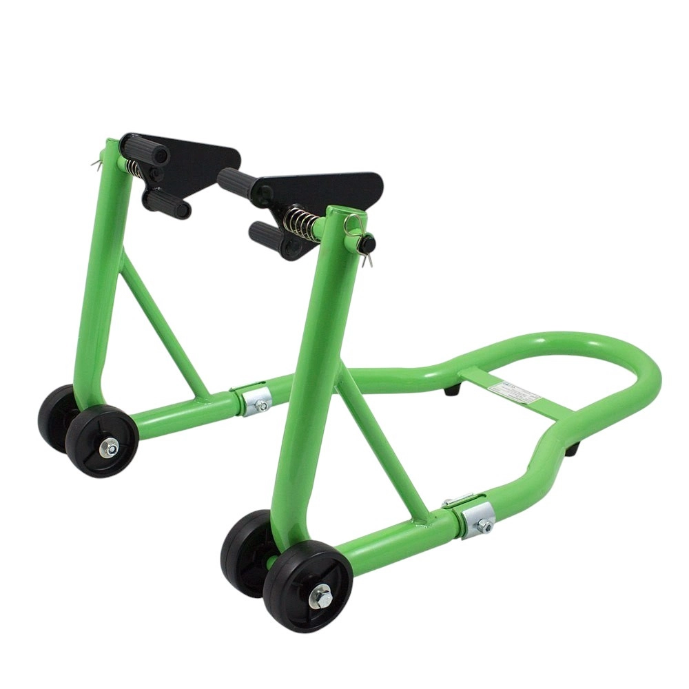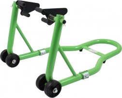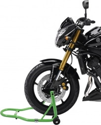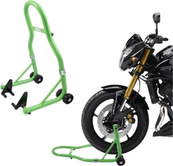Robustný predný paddock stojan je navrhnutý na rýchly a bezpečný zdvih predného kolesa. Poskytuje pohodlný prístup k brzdám, vidlici aj ráfiku, takže je ideálny na výmenu pneumatík, čistenie aj transport. Univerzálny, nastaviteľný držiak 21–34 cm zaisťuje kompatibilitu s väčšinou motocyklov vrátane športových, turistických aj mestských modelov.