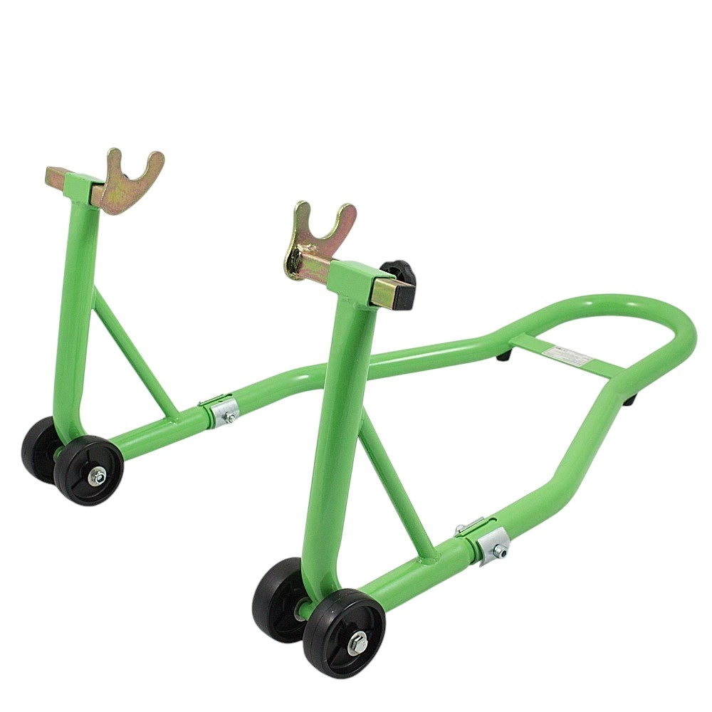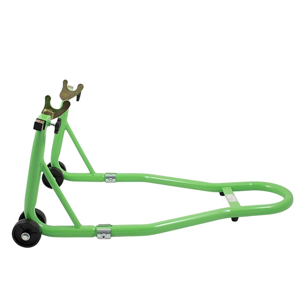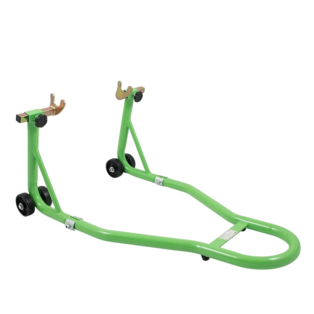 Spoľahlivý zadný paddock stojan na rýchle zdvihnutie motocykla pri údržbe reťaze, demontáži kolesa alebo čistení. Robustná rúrková oceľ s práškovým lakom odoláva korózii, dvojkolieska uľahčujú manipuláciu a nastaviteľné U‑vidlice zaistia bezpečné usadenie kyvnej vidlice.
