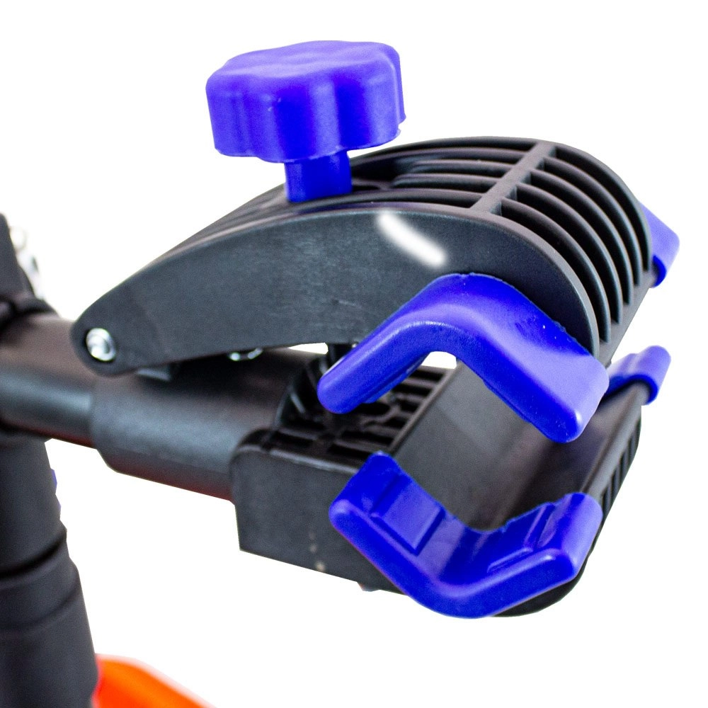 Nastaviteľná, polstrovaná čeľusť s modrými ovládacími skrutkami bezpečne uchytí rám 25–40 mm, nepoškriabe lak a umožní rýchle upnutie aj uvoľnenie.