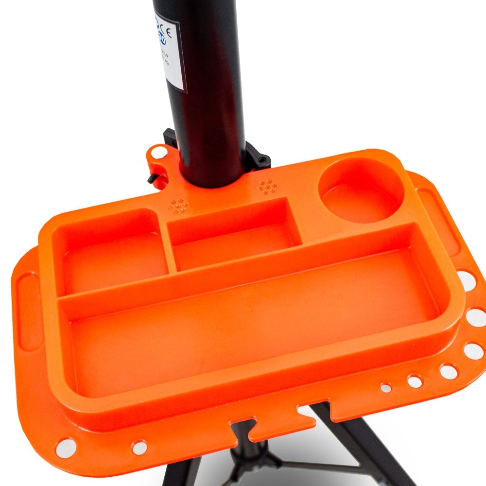 Integrovaná odkladacia vanička s priehradkami udrží imbusy, mazivá a drobné diely prehľadne po ruke, takže servis prebieha rýchlejšie a čistejšie.