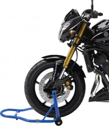 Nastaviteľné úchyty s gumovým povrchom sedia väčšine motocyklov. Rýchle prispôsobenie šírky pre prednú vidlicu aj zadnú kyvku uľahčí zdvihnutie bez námahy.