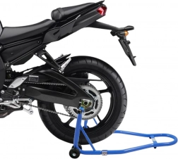 Robustná konštrukcia zaručuje stabilitu a bezpečnosť pri prácach, ako je čistenie reťaze, výmena kolies, bŕzd či tlmičov. Modré prevedenie a kvalitné spracovanie z neho robia spoľahlivú voľbu pre domáce garáže aj servisy.