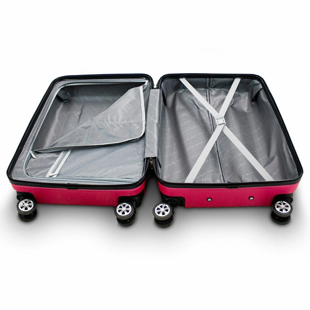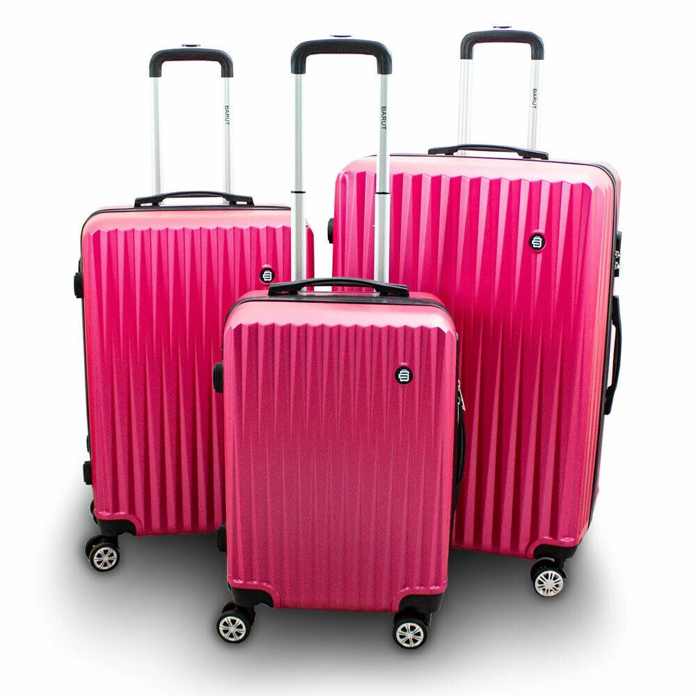 Objavte pohodlné cestovanie so sadou 3 kufrov BARUT v ružovej farbe. Tvrdá škrupina chráni obsah pred nárazmi, štyri dvojité otočné kolieska sa otáčajú o 360° pre hladký pohyb a integrovaný číselný zámok zvyšuje bezpečnosť. Vďaka hornému aj bočnému madlu kufre ľahko zdvihnete do auta alebo po schodoch.