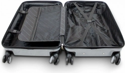 Objavte praktické cestovanie so sadou troch kufrov vo veľkostiach M, L a XL. Škrupinová konštrukcia z polykarbonátu chráni obsah pred nárazmi, zatiaľ čo otočné kolieska 360° a teleskopická rukoväť zaisťujú pohodlnú manipuláciu v letiskových halách aj na ulici. Moderná čierno-biela potlač s motívom mesta dodá vášmu batožinovému setu osobitý štýl.