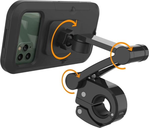 Inštalácia je rýchla a bezpečná – kompatibilná s väčšinou bicyklov s riadidlami s priemerom 22–28 mm. Puzdro je vodotesné, takže váš telefón zostane suchý a plne funkčný. Prístup k dotykovej obrazovke, fotoaparátu aj ovládaniu hlasitosti zostáva zachovaný, aby ste mohli používať navigáciu, hudbu aj športové aplikácie bez obmedzení.
