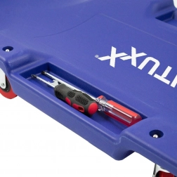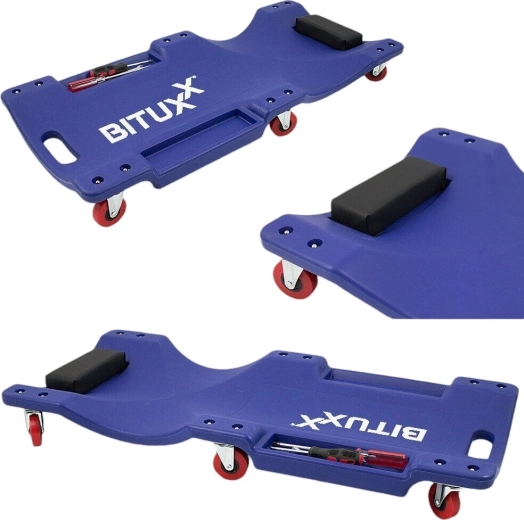 Šesť otočných koliesok zabezpečuje výbornú manévrovateľnosť aj v obmedzenom priestore, ergonomický korpus podopiera telo a znižuje tlak na chrbát a ramená. Ležanka je ľahko umývateľná a pripravená na každodennú prevádzku v autoservise aj domácej dielni.