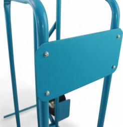 Pevná oceľová konštrukcia s výstuhami a ergonomickými rukoväťami poskytuje bezpečné manévrovanie a dlhú životnosť pri každodennom používaní.