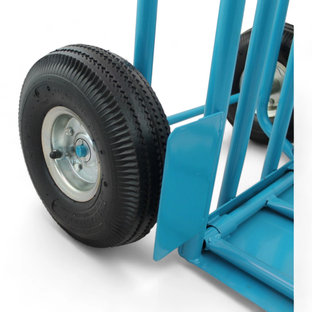 Veľké nafukovacie kolesá zabezpečujú stabilitu, tlmia nárazy a uľahčujú jazdu po dlažbe, štrku aj trávniku s plným nákladom.
