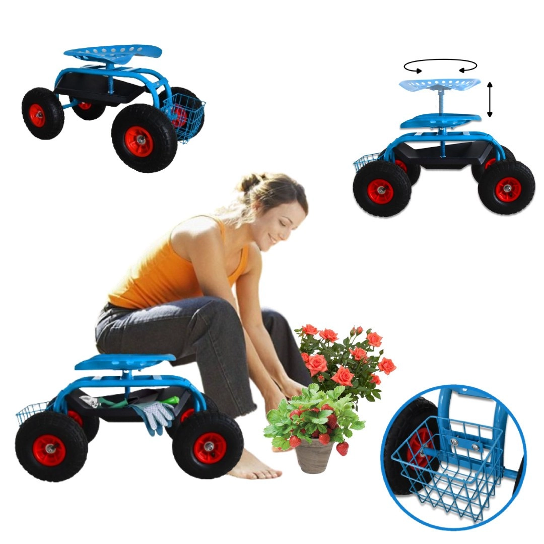 Pohodlne sa usaďte a pracujte efektívnejšie. Pojazdné sedadlo do záhrady kombinuje ergonómiu, stabilitu a šikovné úložisko. Otočné sedlo o 360° vám umožní ľahký dosah do všetkých smerov bez neustáleho presúvania. Vďaka výškovému nastaveniu cca 40–50 cm si polohu prispôsobíte presne svojej činnosti – od pletia cez sadenie až po práce pri plote.