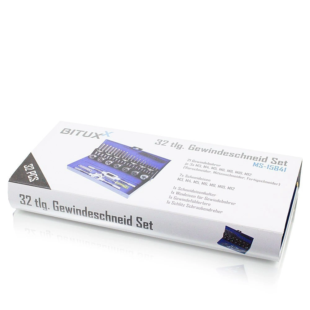 Kompletná súprava na závitovanie s 32 dielmi na presné rezanie v materiáloch do 900 N/mm² – oceľ, plasty aj mäkké a tvrdé drevo. Vyrobené z wolframovej ocele pre vysokú odolnosť a dlhú životnosť. Ideálne pre profesionálov aj hobby použitie, v praktickom úložnom kufríku.